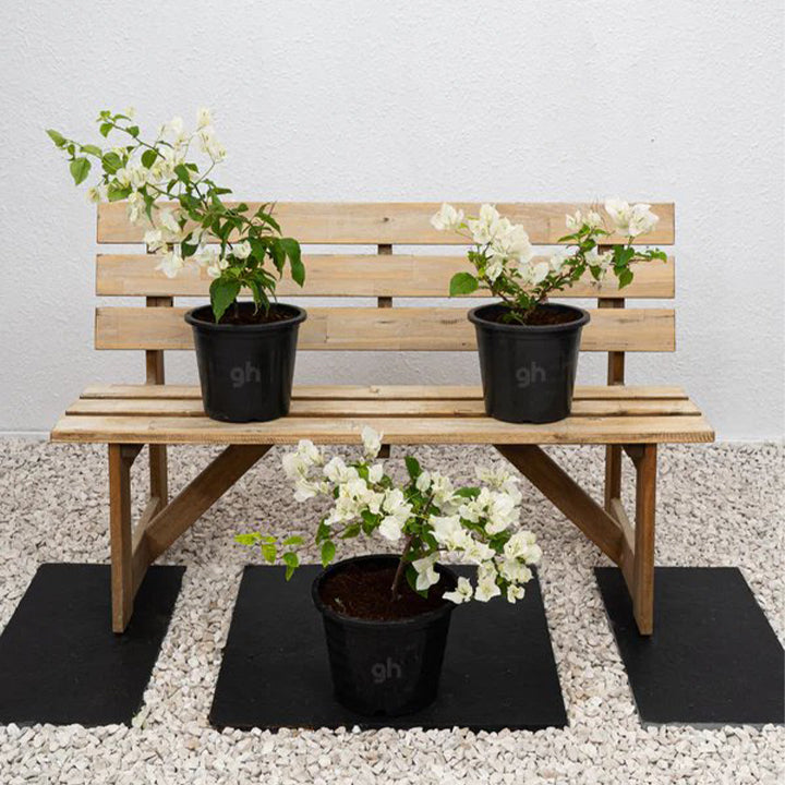 Bougainvillea is a beautiful and vibrant plant that is native to South America. It is a woody vine that can grow up to 30cm to 160cm in height and is known for its stunning display of colorful flowers. The plant has small, white flowers that are surrounded by brightly colored bracts, which are modified leaves that are often mistaken for petals. The bracts come in a range of colors, including pink, purple, red, orange, and yellow, and can be single or double-flowered. Bougainvillea is a hardy plant that thrives in warm, sunny climates and is often used as a decorative plant in gardens, parks, and public spaces. It is also a popular choice for hanging baskets and can be trained to climb walls and trellises. The plant requires well-draining soil and regular watering, but is relatively low-maintenance once established.