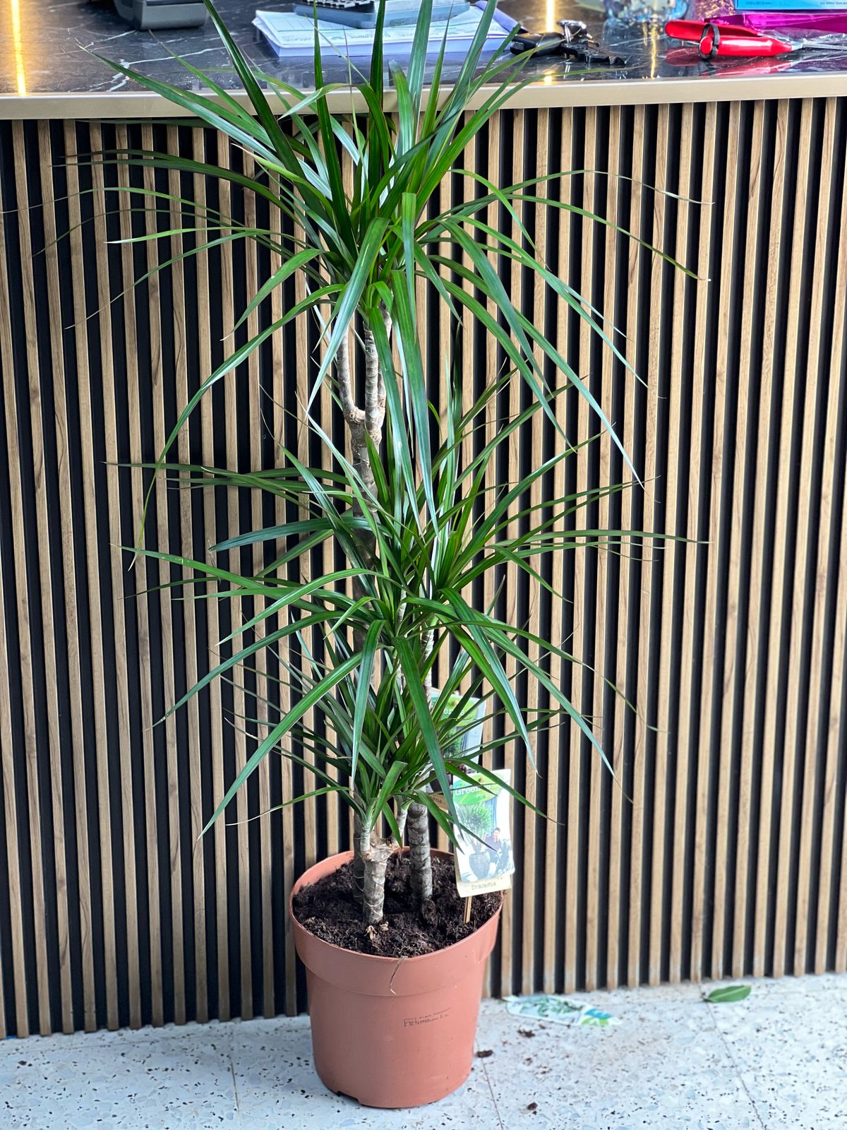 The Dracaena Marginata, also known as the Madagascar Dragon Tree, is a striking houseplant with long, slender leaves edged in red or purple. Native to Madagascar, it's a hardy, drought-tolerant plant that thrives indoors with minimal care.