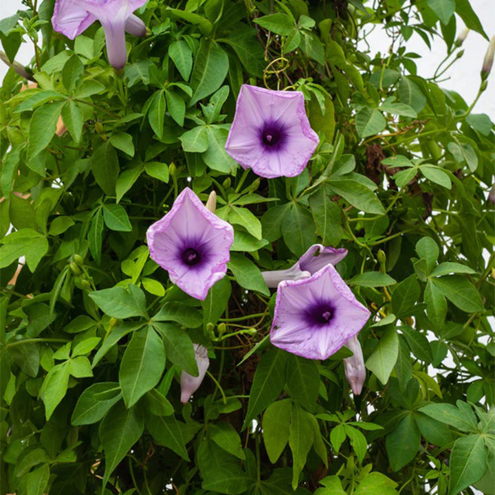 Railroad Creeper, also known as Ipomoea Cairica, is a fast-growing, perennial vine that belongs to the morning glory family. It is native to tropical and subtropical regions of Asia, Africa, and Australia, but has been introduced to many other parts of the world, including the Americas. The plant can grow up to 50cm to 180cm in length and has a woody stem that can climb up walls, fences, and trees with the help of tendrils.