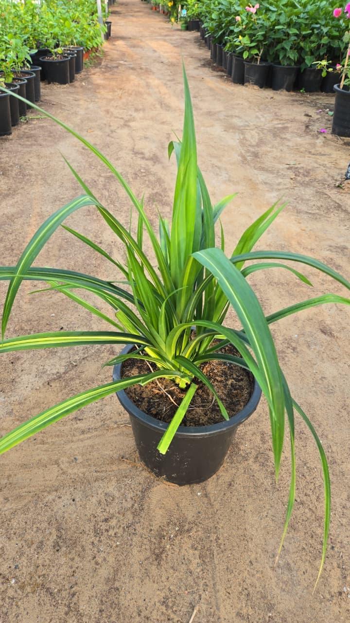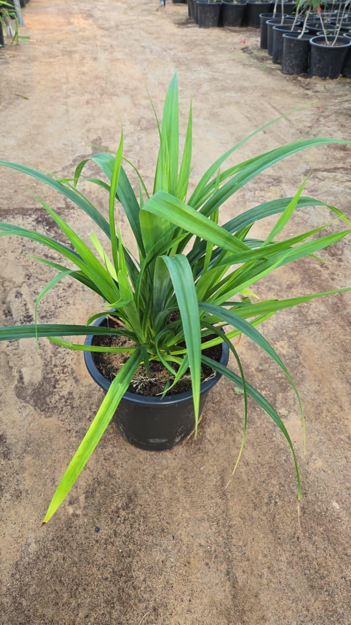 Pandanus Baptistii is a unique and striking plant that belongs to the Pandanaceae family. It is a small shrub that typically grows to a height of 30cm to 40cm. The plant is characterized by its long, narrow, and spiky leaves that grow in a spiral pattern around the stem. The leaves are of green and long.