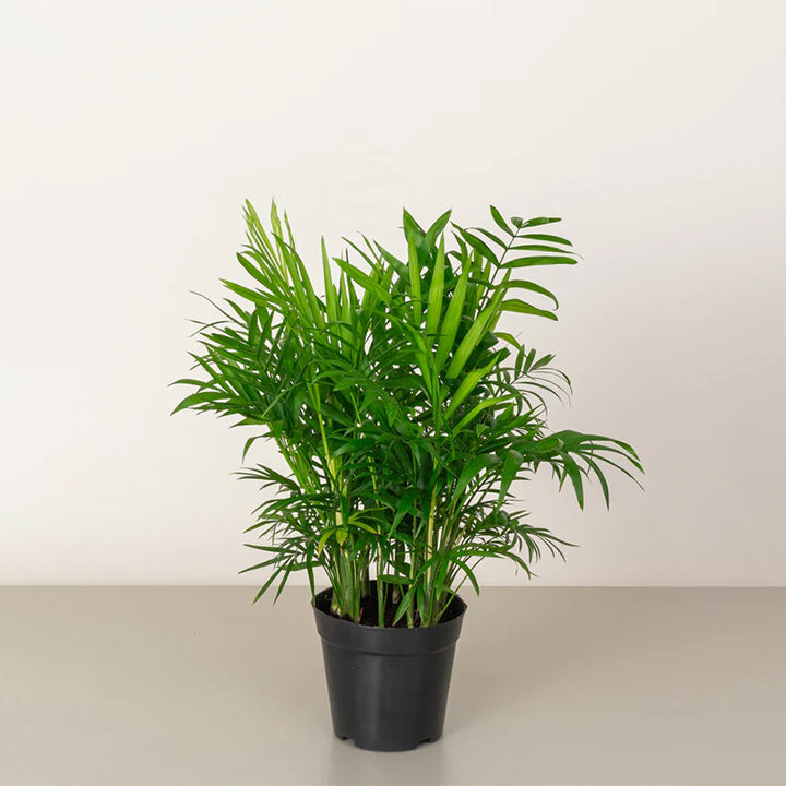 The Parlor Palm, also known as Chamaedorea, is a popular indoor plant that is native to the rainforests of Central and South America. It is a slow-growing plant that can reach a height of up to 100cm, but typically grows to around 30cm in height. The Parlor Palm has slender, green stems that are topped with delicate, feathery fronds that give it a graceful appearance.